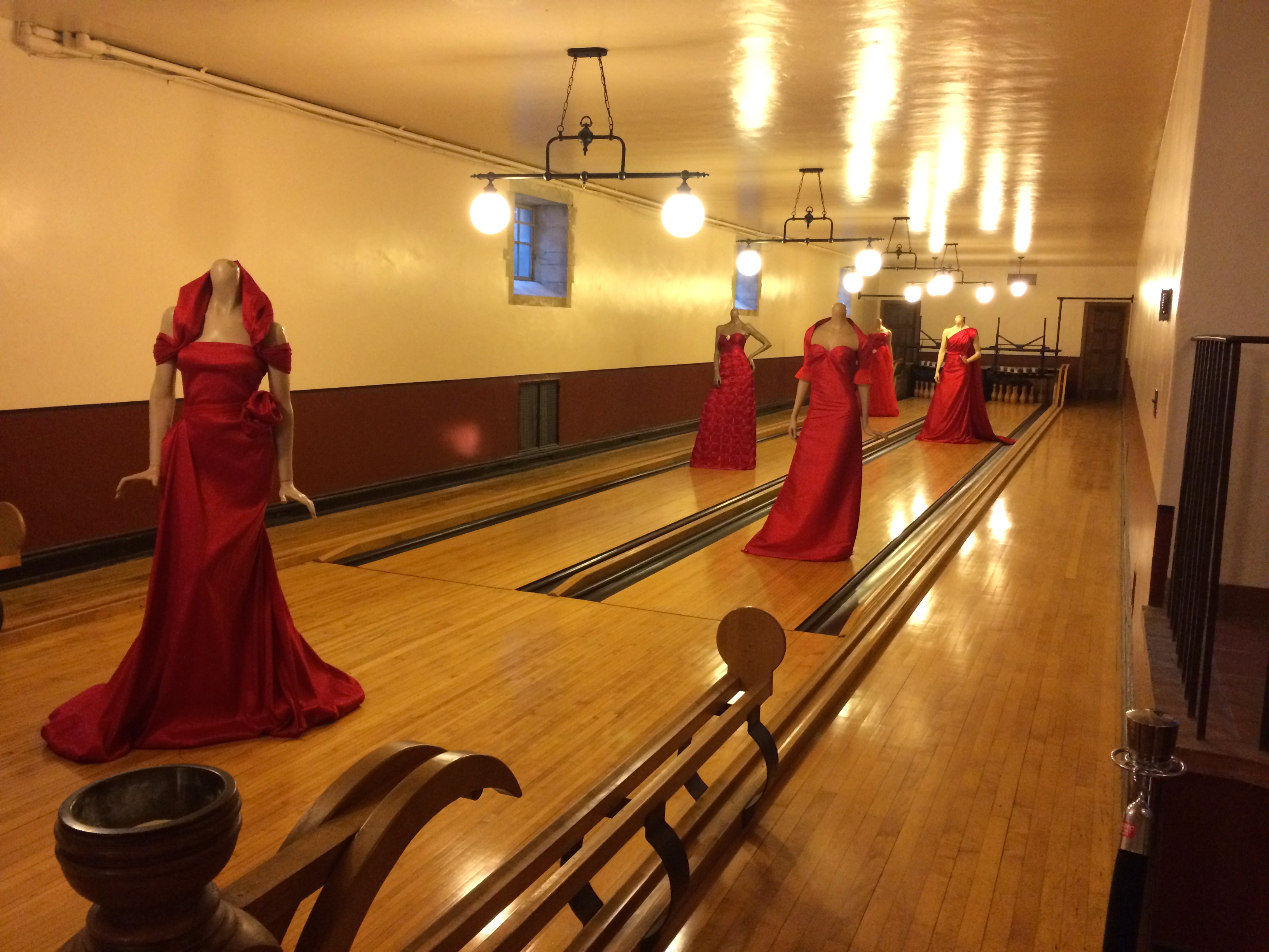 I loved the Doll Room created by Kelly Morgan of Kelly Morgan Interior Design. She chose Dougherty Laser Vision as her design inspiration, who is one of the world’d top vision correction surgeons. Morgan had an two entire walls covered in what appeared to be a black and white photograph of an elegant woman juxtaposed with some traditional elements and dynamic colors. Please see the photo above. There was even a bowling alley in the basement next to a hideaway Prohibition bar. The bowling alley was lined with red Valentino dresses and is a known for the scene in the film There Will Be Blood.