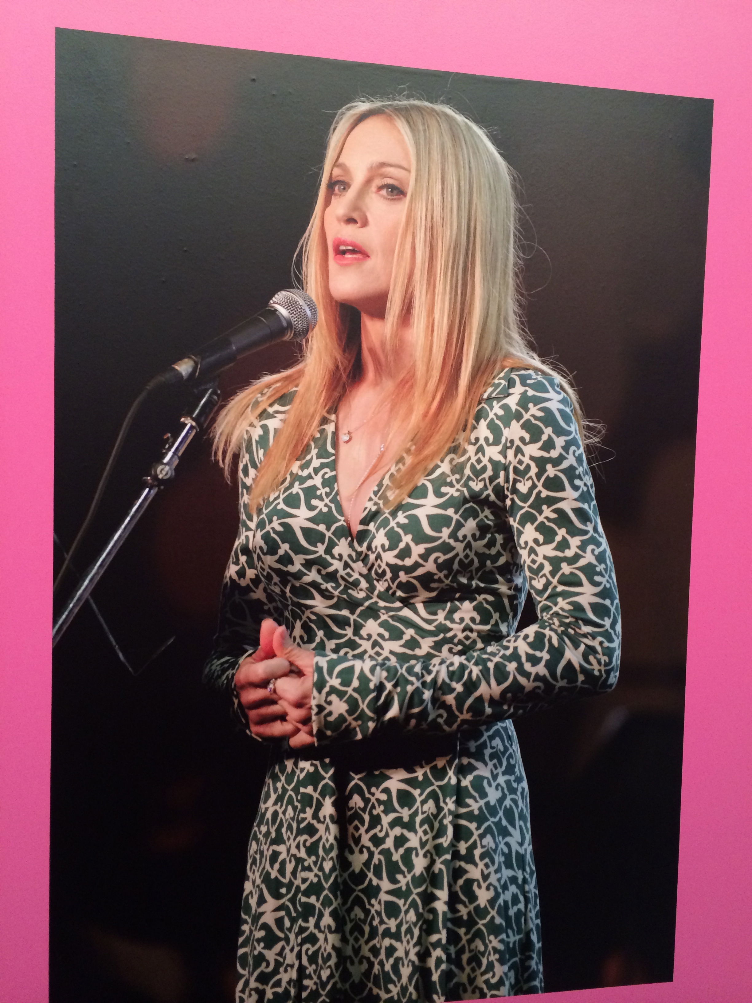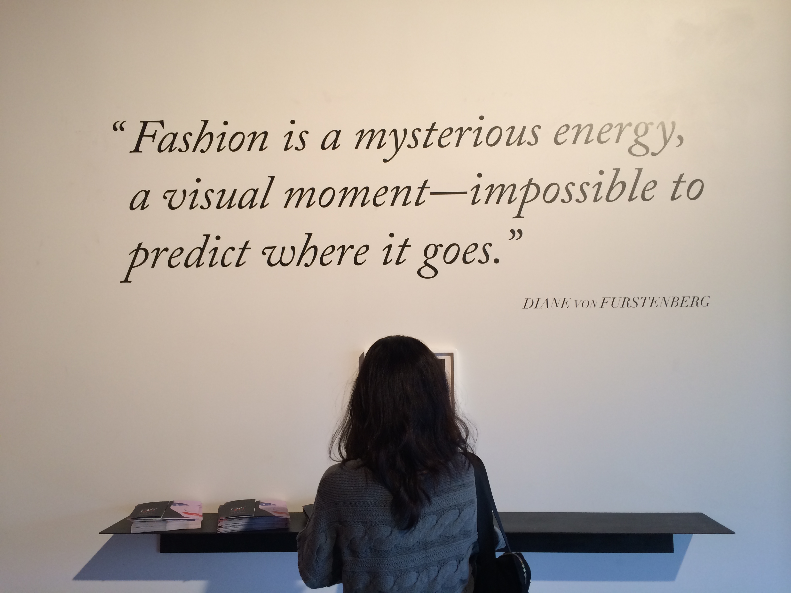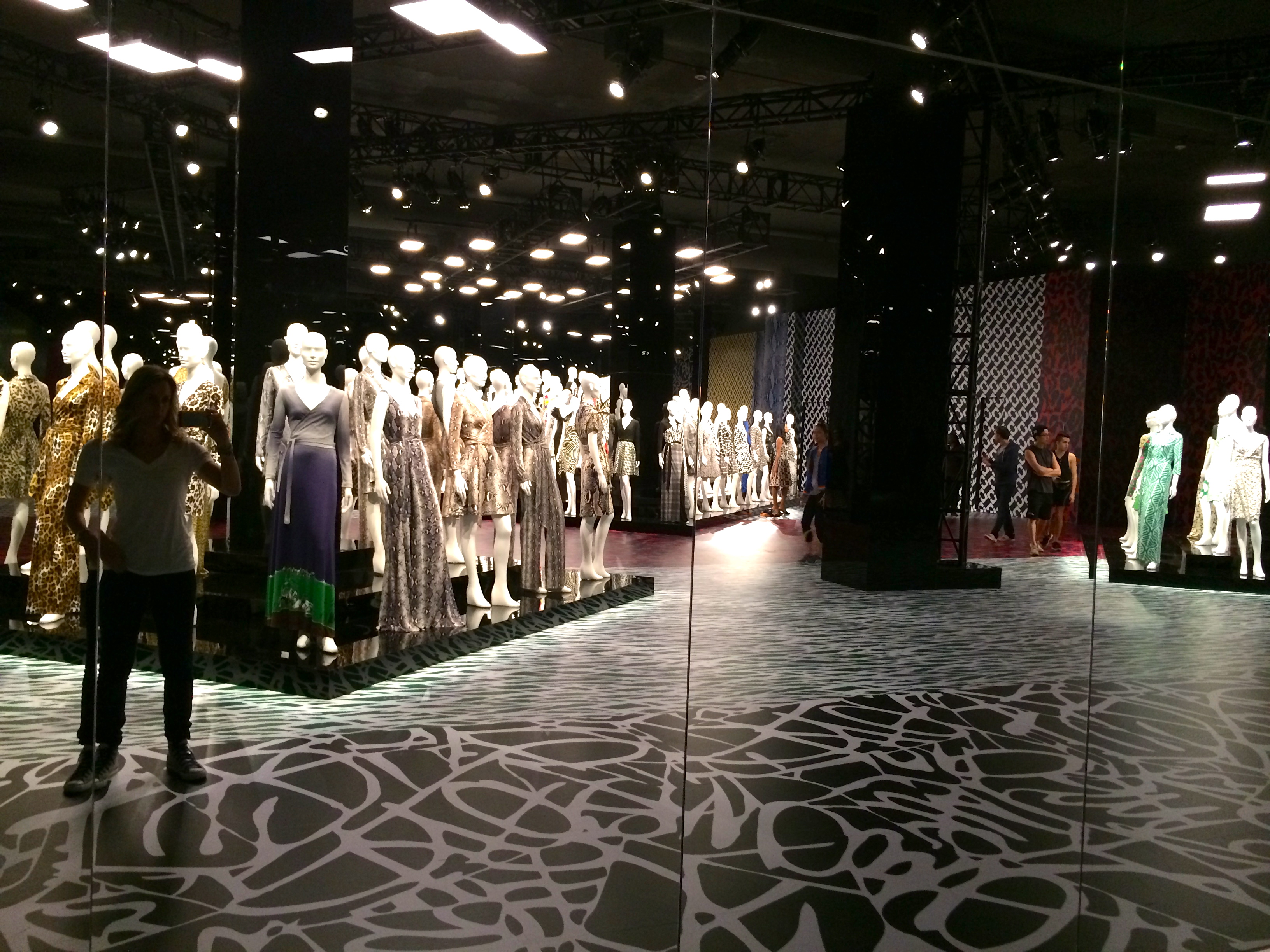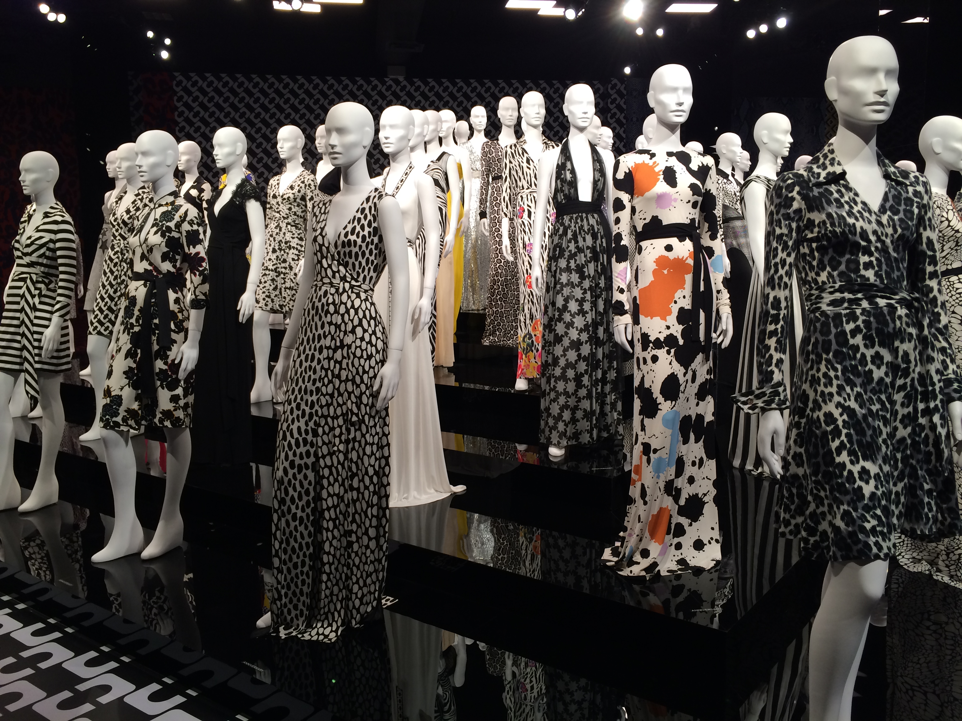 As I entered the new exhibit at LACMA honoring fashion designer Diane vonFurstenberg (formally a princess), I strolled down a long haul filled with large sized images of her iconic wrap dress, many on the cover of magazines like Vogue and Newsweek. Images of Cheryl Tiegs, Madonna, Paris and Niki Hilton clothed in her wrap dress with von Furstenberg’s name as the print brought me back to a long forgotten time. The memorable 1970’s and 1980’s prints here and there – pink cheetah, green and white zig zagging patterns, black and white popping prints. The walls and floors hugged us with those same designs reminding us of the women we idolized in the fashion magazines.