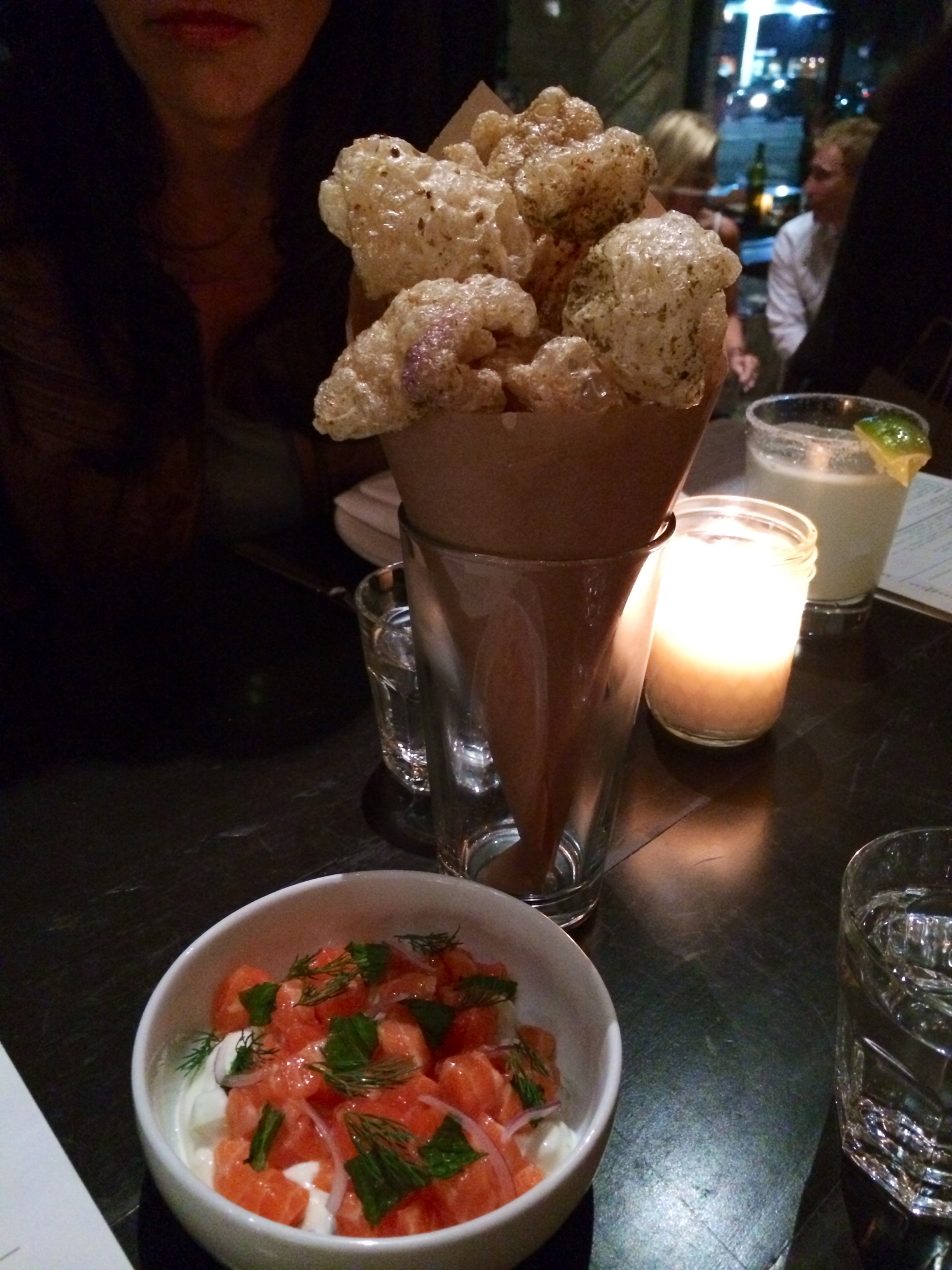 Not only because I like the fun communal tables, or the fact that I am dining in this beautiful vaulted space once the offices of Charlie Chaplin (1929), or that the crowd is so hip and attractive, but the reason I keep going back is the FOOD.
