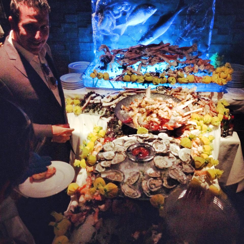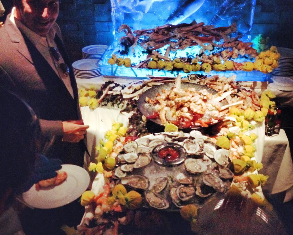 We are still mesmerized over the food we gorged ourselves on for the media opening Thursday night. Shrimp cocktail the size of my hand (brings back memories of Oceanaire Seafood Room in DC), lobster claws perfectly cut and ready for you to devour, massive oysters from the east and west coasts, crab claws sliced for easy access, and the list goes on. Other memorable bites include the tuna tartare medley, lobster sushi, thinly sliced steak with horseradish sauce, and the “I may cry it’s so good” butter cake with a dollop of whipped cream and strawberry on top. Live tunes with a swanky singer and piano player had the crowd grooving late night.
