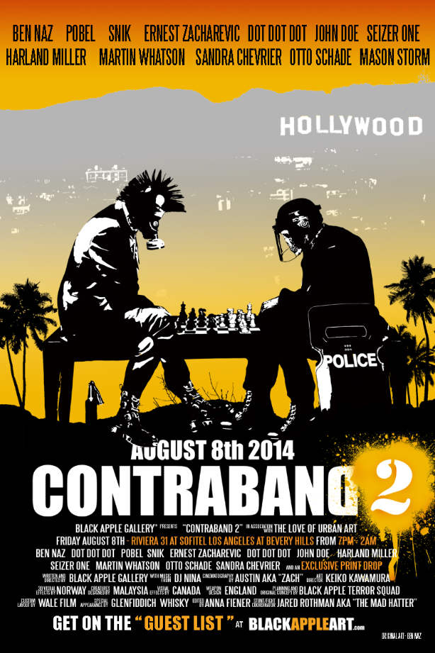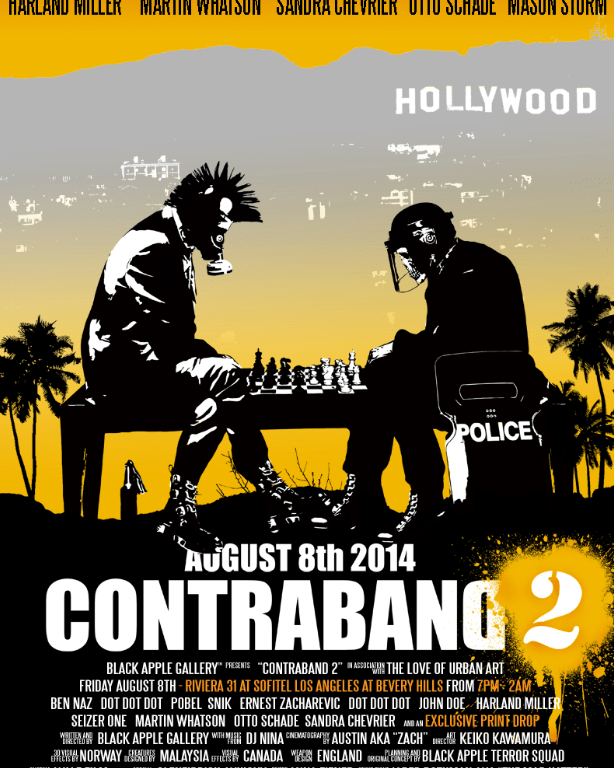 Black Apple Gallery will curate a one-of-a-kind experience premiering artworks by an unprecedented group of globally renowned and legendary street artists at Contraband 2 at Riviera 31 Lounge, Friday, August 8, from 7PM – 2AM at Sofitel Los Angeles at Beverly Hills.