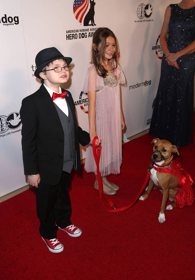 Although all finalists are winners, this year the winner went to Susie, a pit bull mix who I happened to meet couch side with her lovely owner Donna Lawrence from High Point, North Carolina as they finished the red carpet. Donna’s pup was dressed in a purple tutu, and I watched as the two showed great affection for each other. While they were giving hugs and some kisses to each other, I asked the owner in her long gown if I could snap a few pictures. I didn’t know their harrowing story yet, or that they would win, in support of all abused dogs. Named this year’s top “American Hero Dog” thanks to this event put on by the American Humane Association, the sweet dog with missing ears and scars down her back from horrible burns overcame the odds and brings hope to both animals and people.