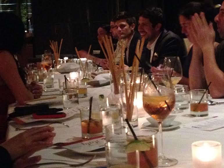 The balmy evening began outside in Drago’s fire lit courtyard with a lovely assortment of yummy hors d’oeuvres from tuna tartar to pizza, and paired with a Peroni Spritz (light and lovely), Marco Polo (deep and baudy) and Salty Maltese (fruity and refreshing). My favorite of the drinks was Peroni’s Salty Maltese, made with Carpano Antica and Grapefruit. Then we were invited to sit at a beautifully prepared table and greeted by Chef Celestino Drago. He was gracious and relaxed. We lit up when he came by and talked with us, as his restaurant and culinary creations were nothing but fabulous. From the Fiori di Zucca e Cappesante, paired with Peroni’s Michelada, Fettuccini Carbonara, paired with a Bella Nastro, and Guancia di Vitello e Risotto alls Milanese, paired with tall glasses of Peroni Nastro Azzuro lager, and finally Tiramisu, paired with Peroni’s Common Vices, we were all satiated and happy. And, this was only the inauguration of the Taste of Italy!