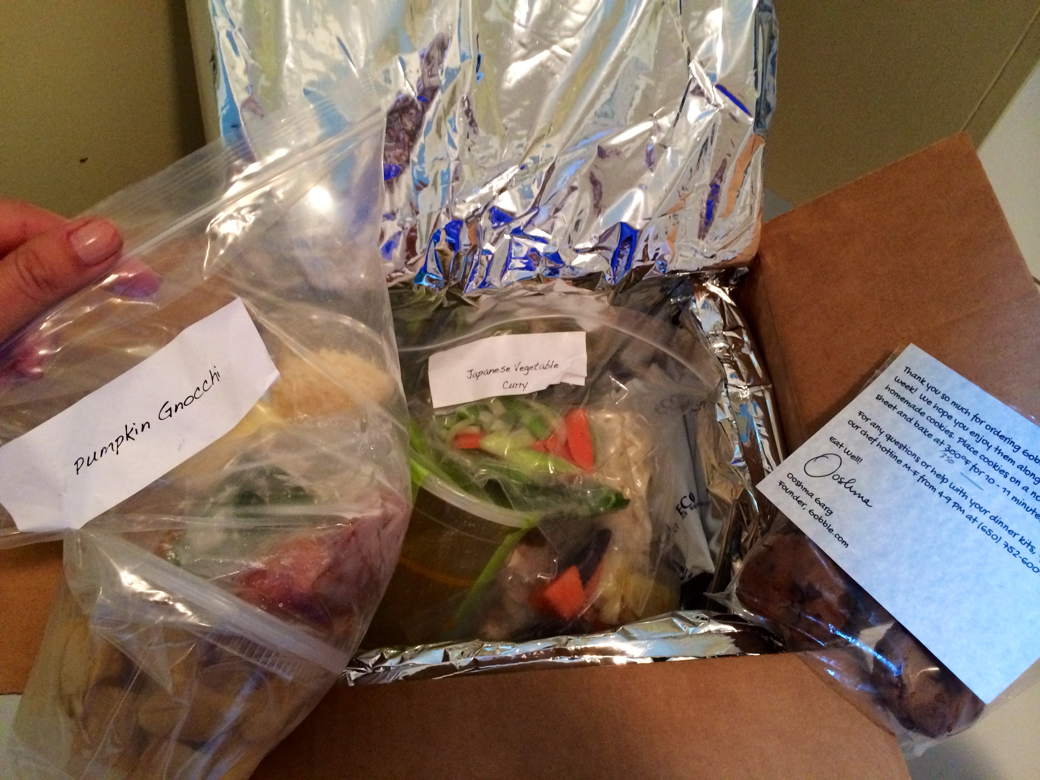 I was reluctant at first and happily surprised when a freezer packed box showed up at my house ready for two dinners. Each dinner kit is expected to feed two people. The first night I enjoyed Japanese Vegetable Curry with Udon that literally took less than ten minutes to warm up in a pan on the stove. Each vegetable was carefully cut and packed. I couldn’t even imagine having the mindset to prepare and buy all the right accoutrements they sent. I could barely finish half of the udon curry medley. Of course, I had room for their signature chocolate chip cookie dough balls that I baked right before bed. The next night included Pumpkin Gnocchi with vegetables. Even the butter came in a small container as well as nice little plastic bottle of sauce with these perfectly cut out apples that seemed to be precooked for tenderness.