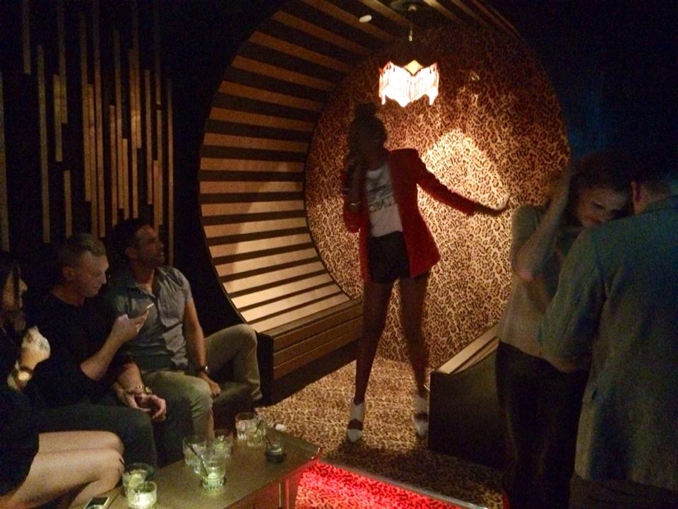 Opening night had us following in David Arquette, followed by a slew of fun media peeps and Hollywood’s young and old scenesters. Scantily clad women in high waisted garters were making the experience enjoyable as champagne and drinks continued to flow into our hands thanks to the saucy serving crew. Dark and exotic, a red glow enhanced the mood with the overhanging lanterns.