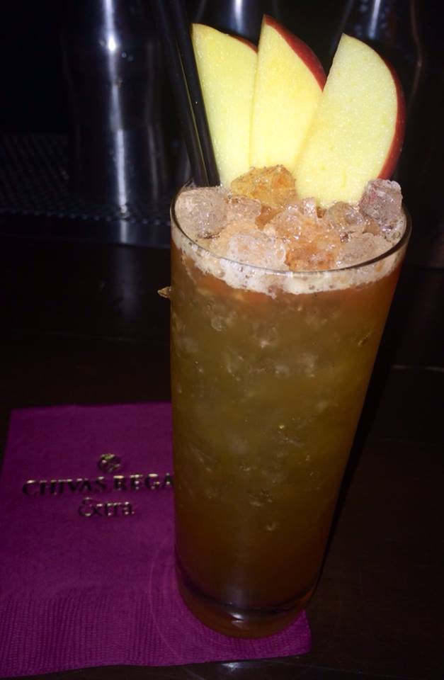 1 1⁄2 parts Chivas Regal Extra 1 1⁄2 parts Organic apple juice 1⁄4 part Lemon juice