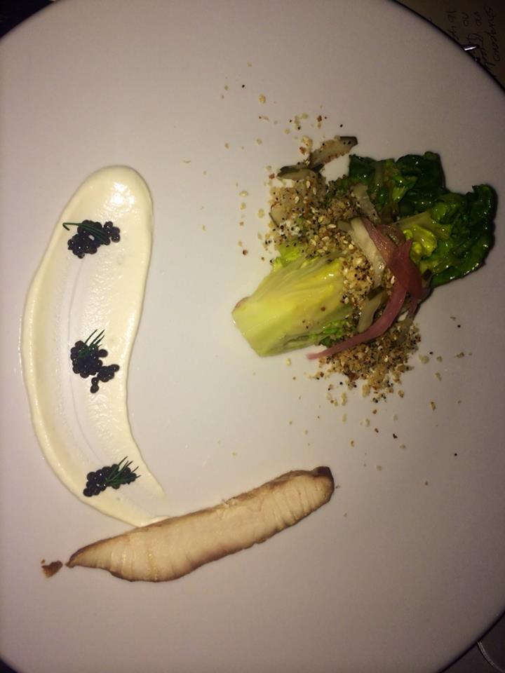 Starting with a Beluga Caviar martini we cheers our new foodie friends who also have been giddy for this special education. We learn that eggs from sturgeon with salt added are the only thing to you can call caviar. Pike roe comes from Canada. Salmon roe comes from Alaska. There are 28 species of sturgeon. 90% of sturgeon in the wild is critically endangered. If you happen to be eating caviar that is from Russia or the Black Sea region, then it is coming from the Black Market because in the last 15 years no delectable egg bursts will be twanging in your mouth from this area.