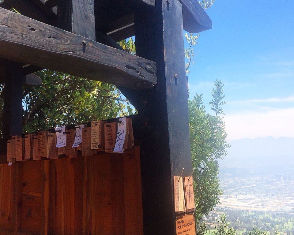 The views of the Verdugos, the San Gabriels (and the 5 Freeway) are worth this hike, but mainly the sentiments. “Thinking of you Chris. I know how much you loved to hike. Love, Mom” was the first wood card I read hanging by its nail to the entrance to the shrine. I already choked up after one post.
