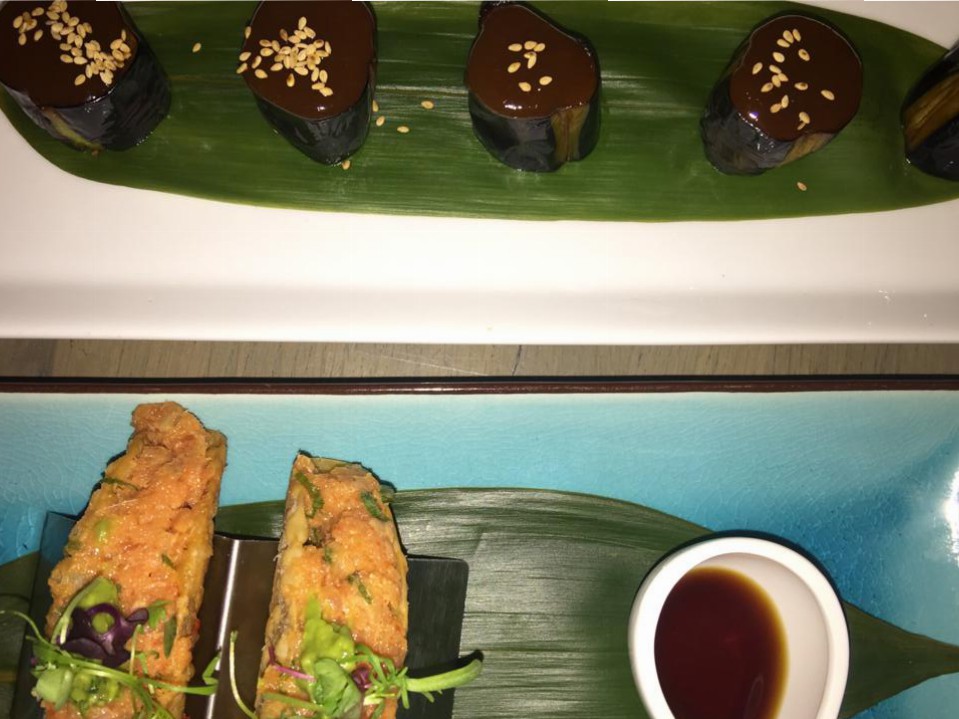 The vibrant menu includes items presented and done in a new way, a way I have never tried. My favorite dish on the menu was the warm melt-in-your-mouth Miso Glazed Japanese Eggplant presented like sushi rolls. My second favorite bite was the large Natural Canadian Scallop wrapped in a crunchy netting from Nova Scotia. My third favorite appetizer was the tender BBQ Pork Short Rib with roasted Fuji apple glaze and a container of red cabbage slaw that could be thrown on top. These items are all perfect to share.