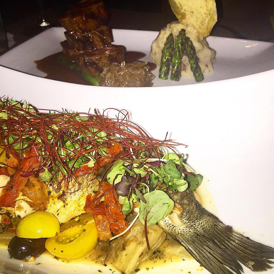 Estate even has Wok Dishes like Ramen, Fried Rice, and Pad Thai. Since they were out of the highly coveted Alaskan Black Cod for my main dish, the Whole Branzino ‘Aqua Pazza’ with Mediterranean sea bass from Greece was a winning choice while my mother enjoyed the Van Well Farms Rib Eye Medallion with smashed red creamer potatoes and grilled asparagus artfully displayed like a tower on the plate. The whole Branzino fish was served with head and tail, but prepared so you can eat the inside without the bones. The flavorful medley of vegetables that covered and surrounded the Branzino added natural robust flavors to my favorite fish.