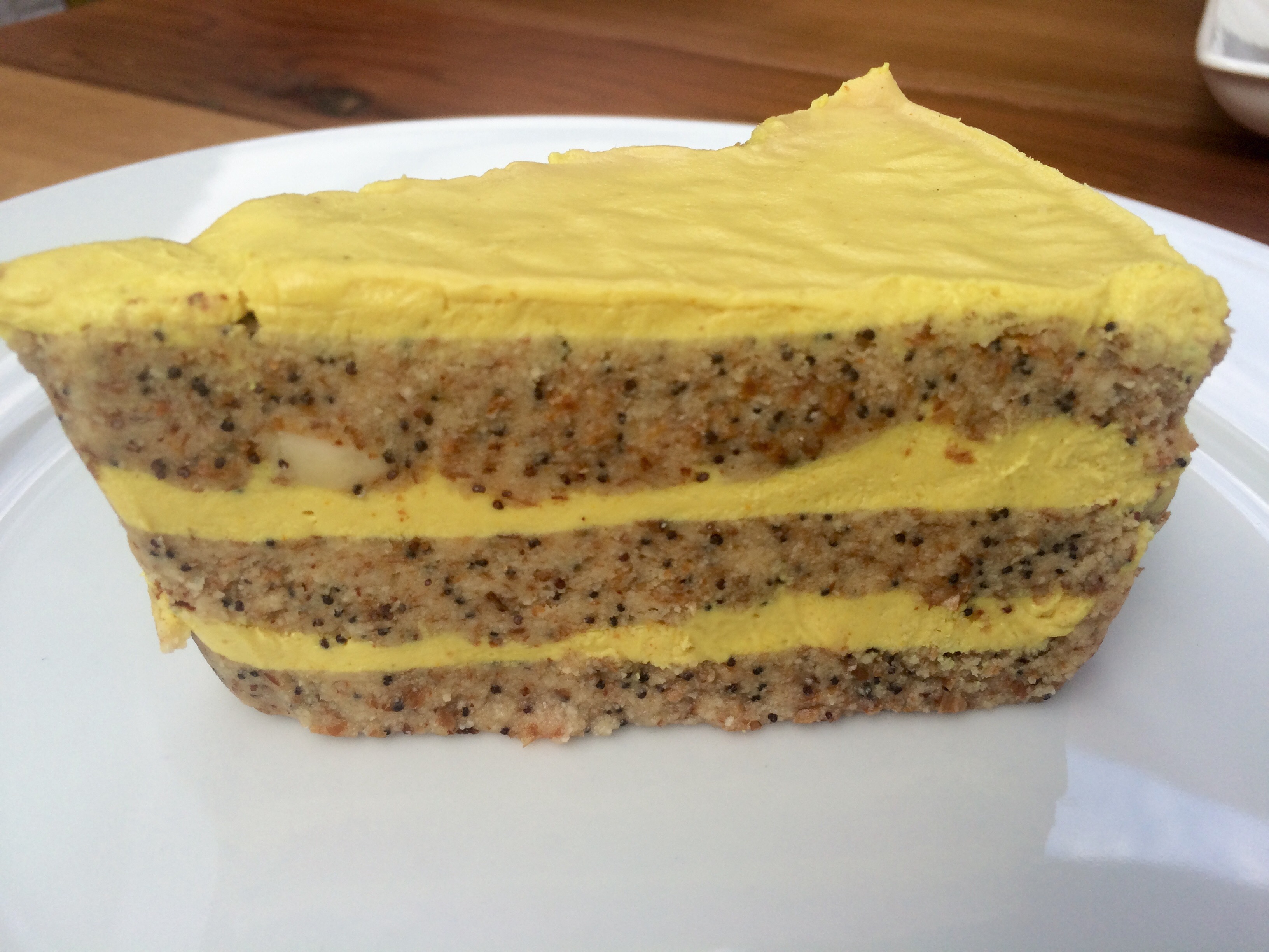 For snacks dehydrated options include Kale Chips, Spicy Pumpkin Seeds, Flax Crackers, Onion Rings, and Zucchini Chips. Desserts such as Key Lime Pie, Super Food Ball, Chocolate Dream Cake, Chia Rose Cake, and Carrot Cake are still possible. The lemon poppy seed cake was sweet and heavenly.