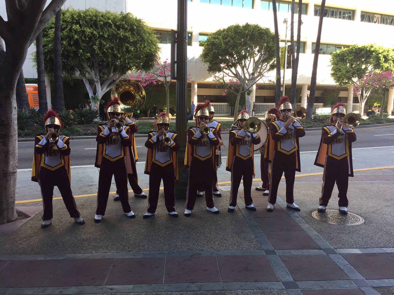 For this Super Bowl Sunday of caffeine — held on a workday, of course — the University of Southern California marching band performed in front of Coffee Bean & Tea Leaf’s flagship location, which also happens to be its 1,000th store, at 5700 Wilshire Blvd. USC’s beloved Traveler was also on site, but did not do any laps around the block, as he was no doubt still tired from the many laps at Sun Devil Stadium after each Trojan touchdown.