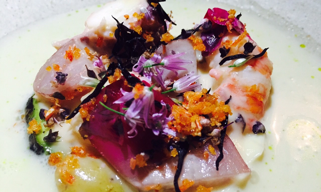 Chef Kida followed with equal pizzaz, offering Santa Barbara spot prawn with smoked trout roe in coconut dashi. The dish could be considered an homage to chowder or quite possibly the apex of its possibilities, as well as a reverential welcome to a New Englander.