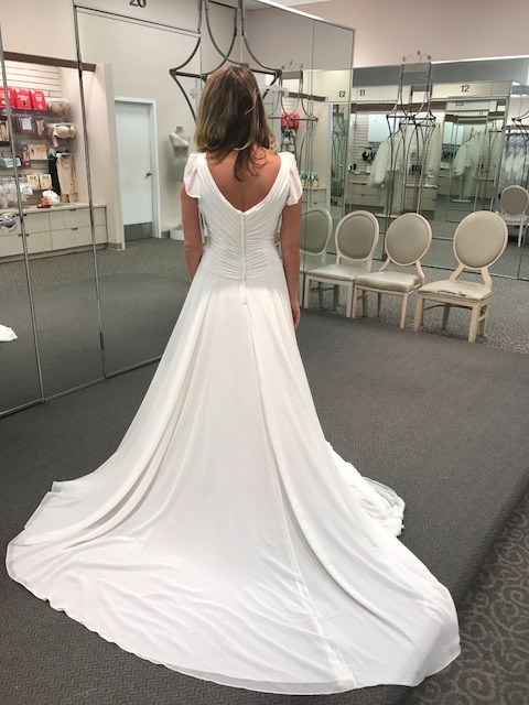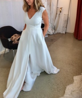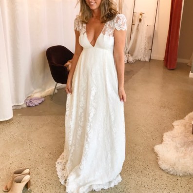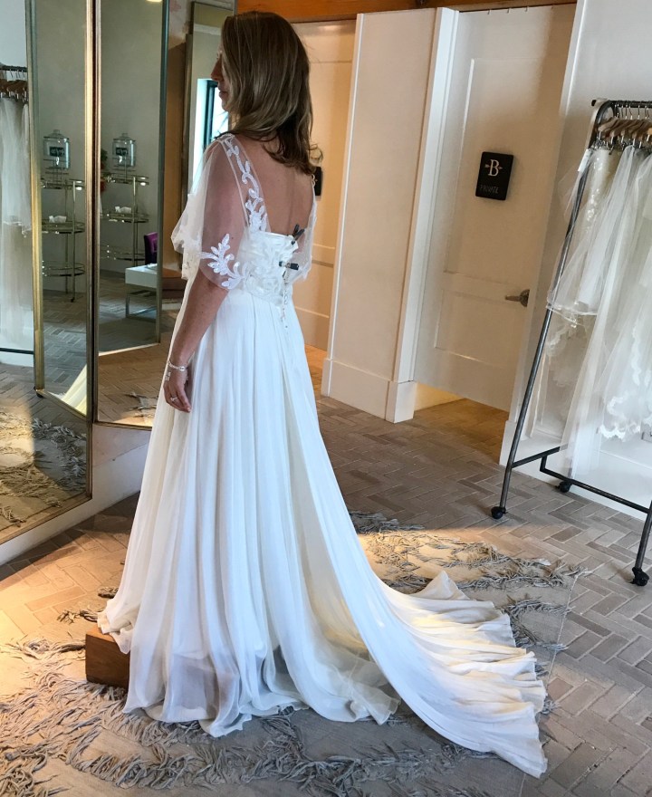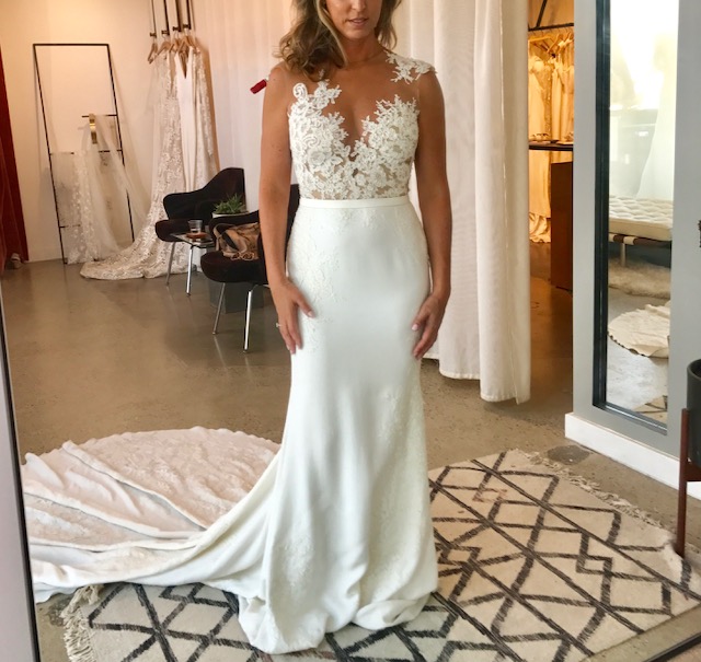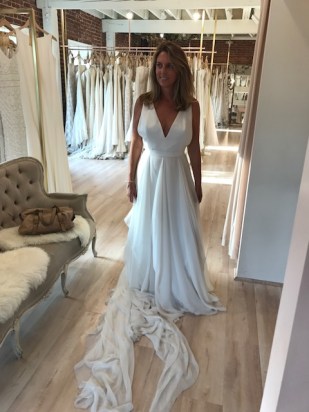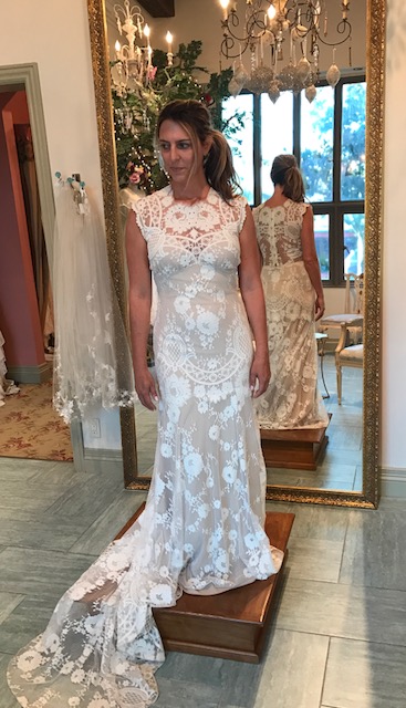 I was in love with every dress in this Venice location. Their lacy, romantic, sexy designs like hanging attached sleeves, low backs, and deep V fronts all make bold statements, but basically everything I tried would have looked fantastic on my old skinny 30 something year old body. Not now. Unfortunately my experience was utterly shocking, more like a bad sitcom. As soon as we arrived we were scolded that I should have selected only 4 dresses and this should have been done ahead of time because time is limited and she had 4 more appointments. The rudeness didn’t get any better as she yelled at my friend to sit down (who offered to help me in the dressing room) and then demanded she only be in the dressing room because I was not allowed to even touch the dresses because 1) they were expensive and 2) she had to put them on me. I felt like I was getting punked on MTV. The girl Hayley later apologized and sent nice emails after the fact. Honestly, I was made to feel like I shouldn’t be there. I honestly wanted to try on more dresses but the energy was so toxic I thought this is not where I want my dress to come from. However, I drool often over all their designs on Instagram and wish the way I felt didn’t match the way I felt about their dresses.