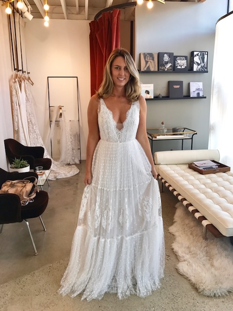 I first scoured the sample sale location in Venice, but arriving even five minutes late in this secret spot early Saturday morning was too late. A mom from San Diego was with her daughter and basically scooped up every single dress in the store and hogged the one dressing room for hours. Eventually I made my way to the hallway with a few other brides (and took the leftovers from the mom) and just changed into a couple dress options. For the boho bride, this place had a lot to offer, but they seemed picked over at their store location off of Abbot Kinney. I soon learned they were closing shop in a few weeks for good.