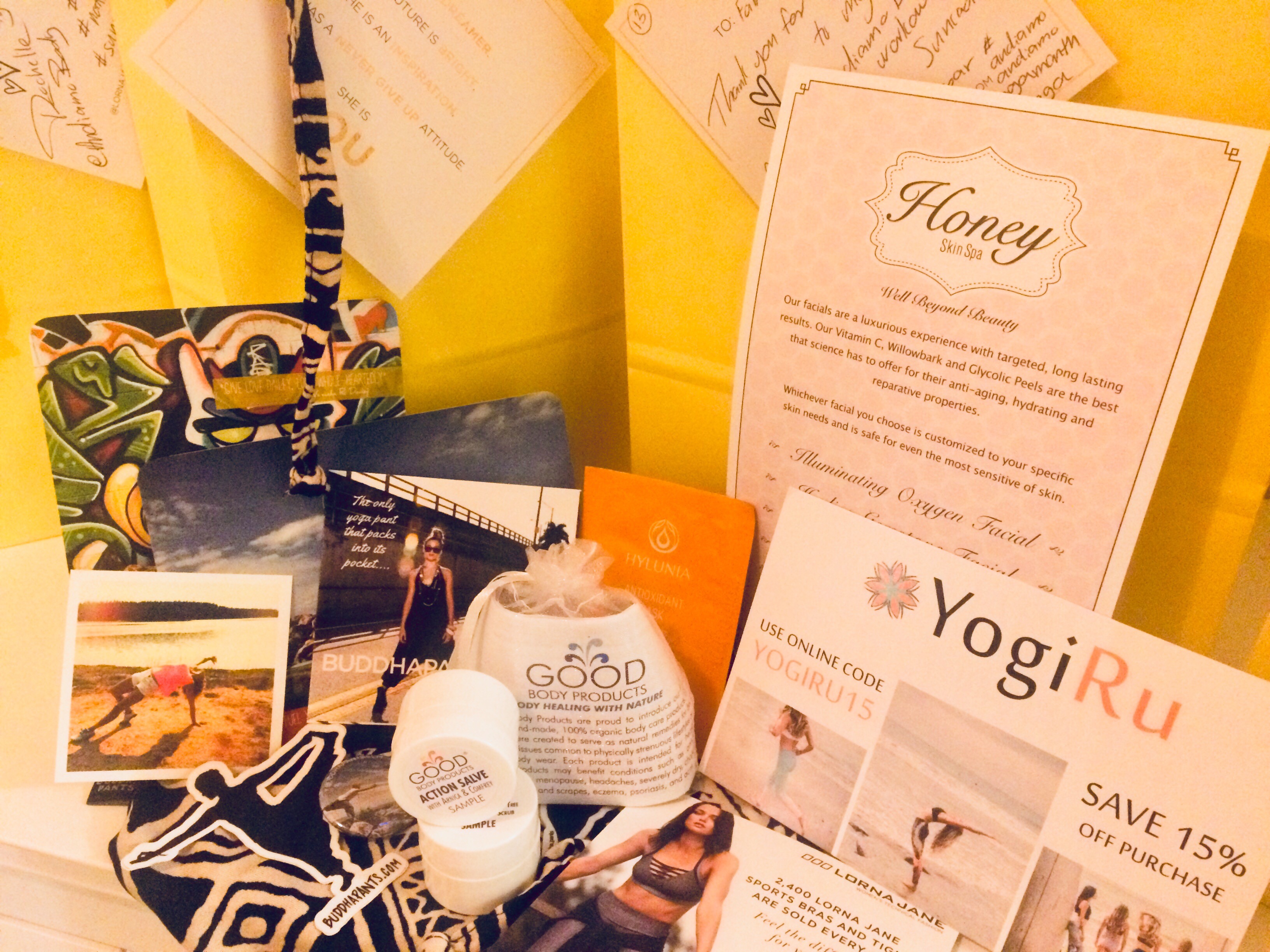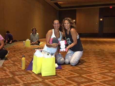 Discovered at Wanderlust 108 Seattle this summer, YogiRu blew me away. Shayne Ebrahimi’s yoga wear sports lovely designs created by her artist friends. I hope to be one of those lucky devils soon! The smooth sumptuous fabric alone is a “to die for” factor, but the fact that her yoga pants are so unique just doubles down on that. Plus, she’s brand spankin’ new on the scene and just so adorable and sweet. How could you say, “no?” Katherine’s husband, Bob, actually won YogiRu’s fabulous painted pants, and he very lovingly handed them over to his wife. I think they were both pretty happy with that grab!