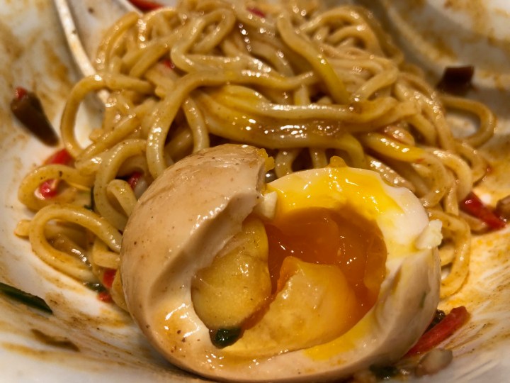Dan dan noodles are traditionally part of Chinese cuisine, so the killer noodles are The Tsujita’s Japanese-style take on the dish. They may not be on the permanent menu for The Tsujita, as they are the signature item at Tsujita’s hot new Killer Noodle location in Sawtelle, so get them while you still can on the eastside! The noodles are traditionally served dry (without soup) and topped with minced beef. The Tsujita offers a version with soup, which is the one I ordered, and which I highly recommend. The chicken broth is fantastically flavorful, and can be modified to your desired spice level- I went with medium, which had a pleasant heat to it. The killer noodles also sub out chicken for beef, which imparted a cleaner, less greasy profile than I’m used to. And the pieces of tofu mixed in added a great variation in texture, especially when paired with the crunchy bits of cabbage.