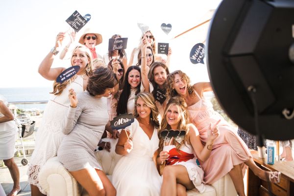 The free standing lightweight Usie Booth at our wedding allowed guests to take photos on a white couch with the ocean in the background. It didn’t take up much room, and if needed, the free standing apparatus can shine light if your venue is dark. Usie Booth dropped the machine off before the wedding and picked it up the next morning. Before the event, you can customize your photos with a theme or hashtag. Photos can be printed or can go online in various forms like photo strips, moving .gifs, or just one picture shot. After your event, you get a customized online gallery a few days later.