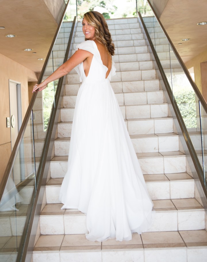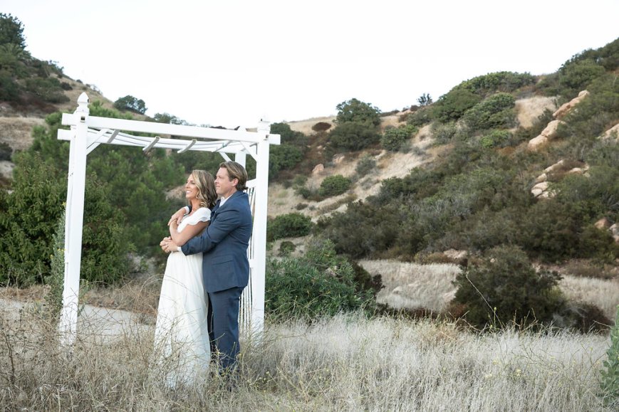 @SkyandReefPhotography by Tara Morenfeld shoots in both LA and Hawaii. She created a stylized photo shoot for us thanks to becoming her subjects via the Facebook group, Something Borrowed, Something New. Our fun shoot included a first look walk under a white archway in the middle of a field on a cliff way up in the canyons miles above the Malibu Pier. The secret spot was a hard-to-get-to location which made me love it even more. Other looks included massive balloons, sunset pictures, and solo shots of my blowing veil at sunset.