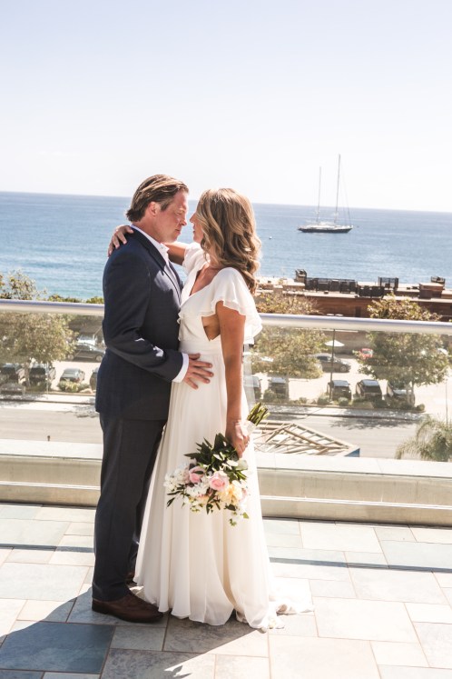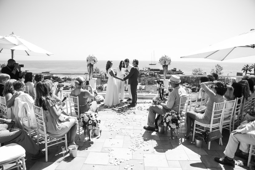 Thanks to my husband’s family owning an incredible venue on the water in Malibu, we didn’t have to worry about renting a location since the ones we looked at went from $7,000 to $20,000+. Although I imagined getting married with my toes in the sand, we realized shuffling people from the beach (where you need a permit in Malibu and Santa Monica) to the venue was too much, especially for Mark’s 96 year old grandmother. Thus, we chose to have the ceremony and party all at one location, on the massive deck at CURE Malibu, right across from SoHo House and Nobu, with a breathtaking ocean view.
