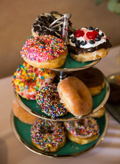 My dear friend Amber picked up my donut order at my favorite donut shop near the Grove the morning of the wedding. She placed the fresh donuts of all varieties on tiered plates. Even with cake, the donuts were gone quickly.