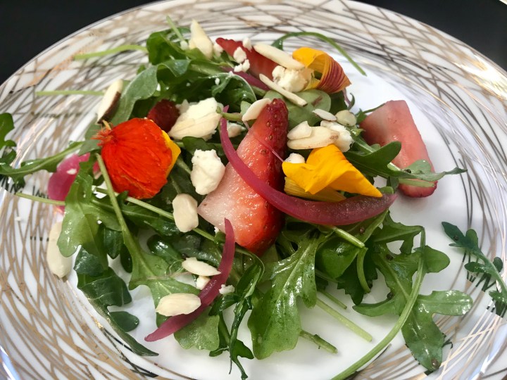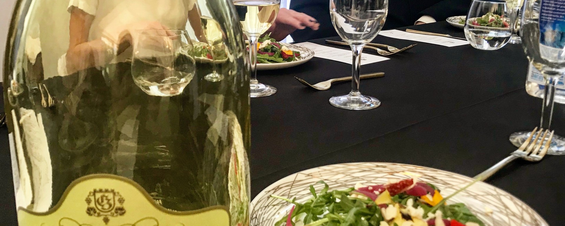 After a round of scrumptious appetizers had been devoured with our bubbly, guests moved on to still wines like Ca’ del Bosco’s Curtefranca Bianco Chardonnay 2013 and the Rosso del Sebino Maurizio Zanella 2009, paired with arugula and strawberry salad and seared chicken breast from Crateful Catering (a company we had used for our own wedding). To top it off, dessert was served with the special Franciacorta Riserva of Ca’ del Bosco.