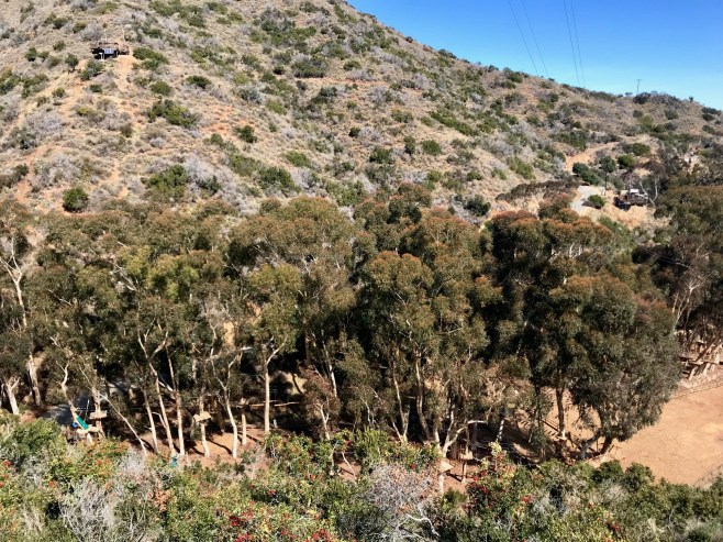 For those who don’t make the weight cut (85 lb and no more than 285 lb I believe) to zip line, there is also the Catalina Aerial Adventure, just below the zip line created in a grove of eucalyptus trees. This ropes course has various levels where you can climb, swing, or crawl through a network of challenging obstacles suspended in the trees. An outdoor 32-foot high Climbing Wall is also nearby.