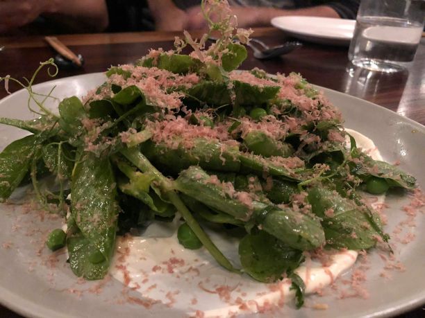When we were steamed, the server recommended an off-menu special, peas and ham. This dish was not only beautiful but also perfectly cooked. The peas and leaves were slightly firm, but perfectly tender, topped with shaved ham and served with a white cream sauce.