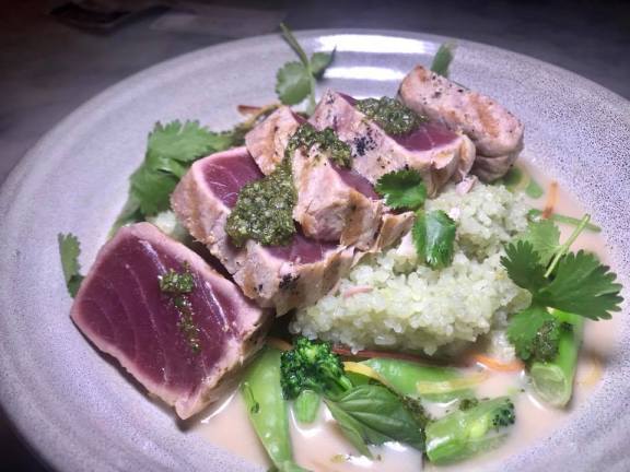 Save room for entrees like the succulent Short Rib with homemade English Pea Ravioli and Seared Ahi Tuna in a bowl of green curry coconut rice with lemongrass broth.