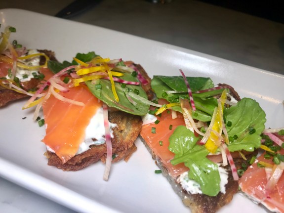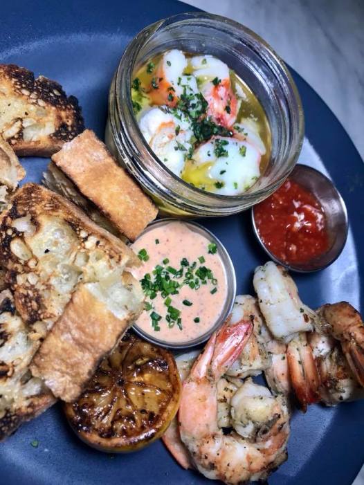 Begin your night sipping a gin-based cocktail with rose petals called Wake the Angels and move on to the fig and ginger Mule. For a drawn-out dinner, share Smoked Norwegian Salmon on a crunchy hash brown with crème fraîche and arugula, Black Truffle Cheese Fondue with warm pretzel bite knobs, and the sinful Surf and Surf with luscious chunks of crab marinating in warm butter that comes with chilled Mexican shrimp and grilled bread bites.