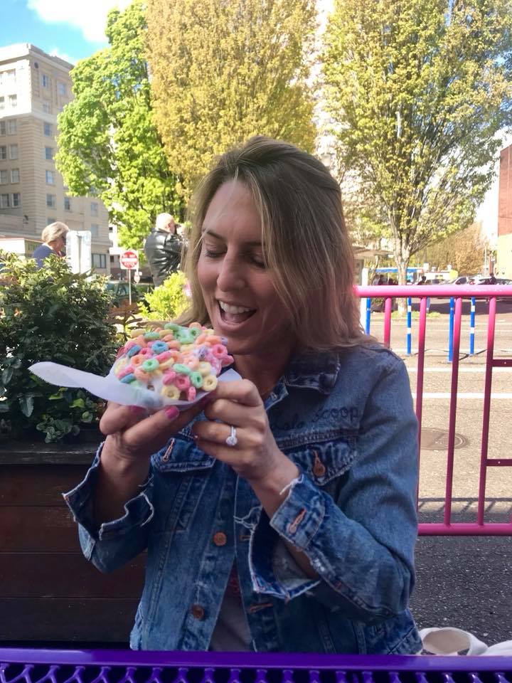 Our trail led us down to Old Town Chinatown, where another line outside a grungy glitter building near the water with passersby carrying pink boxes let us know we had arrived at famed Voodoo Doughnut. In true tourist form we hopped in line and admired doughnut choices like bubble gum, bacon maple, and Cap’n Crunch cereal. I opted for vanilla glazed with fruitloops while my husband engulfed a (local favorite) chocolate glazed cream-filled delight.