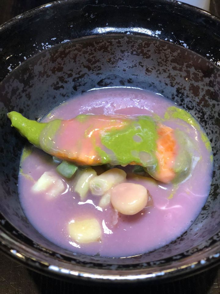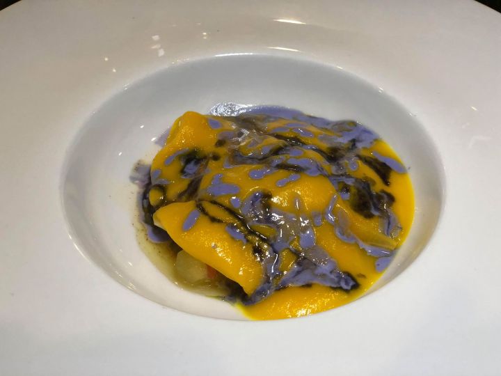 My favorite courses were the duck raviolo and ocean trout course. The duck meat in the ravioli was rich but unexpectedly light. It was not weighed down in grease or fat, as most duck can be. The masterfully skilled chefs created a perfectly balanced dish. The ocean trout combined light fish flavors with soy and citrus. All dishes were plated beautifully. Considering Chef Craig Thronton works as an artist, this comes as no surprise. Each plate displays an edible work of art and features bright colors made from unusual ingredients. The duck raviolo was finished with a vibrant purple drizzle made from butterfly peas.