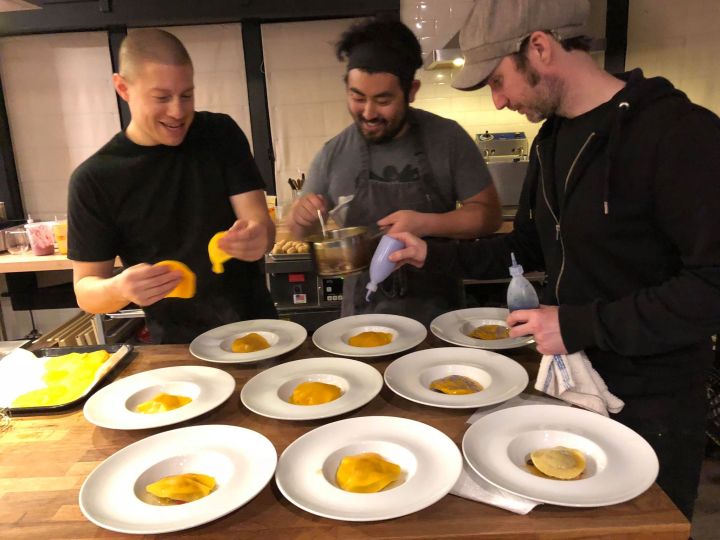 The open kitchen and dining area made for a culinary atmosphere, unlike anything you could have in a restaurant. My closest comparison was when my husband and I had the dinner tasting at Grant Achatz’s The Aviary in Chicago. We were seated at the only table in the kitchen but were still separated from the action by a large counter. While it was fun to watch all the action in the kitchen, the separation made us feel like bystanders rather than participants. At Wolvesmouth, you’re made to feel as if your best friend is a Michelin- starred chef, and they’ve invited you over to dinner. The proximity to the kitchen, and the encouragement to walk around, watch the action, and the ability to ask questions engages and excites any diner that loves fine dining, food, or cooking. The casual atmosphere makes all diners feel welcome and appreciated.