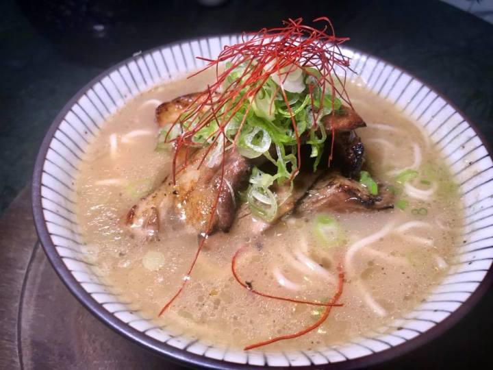 Ramen with chicken, tequila, and pork chashu – Who would expect ramen to be on the menu? This lighter version is served here with chicken broth.