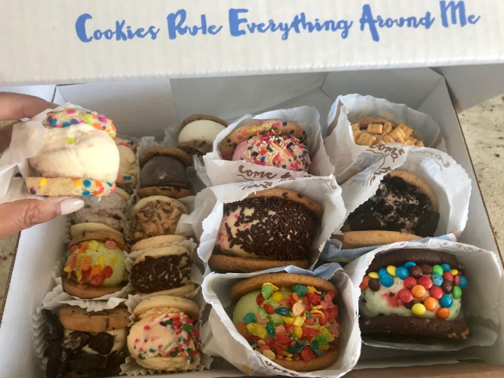 CREAM otherwise known as “Cookies Rule Everything Around Me” became our nightly treat ritual. “Which one should we select tonight?” I would ask my husband as I pulled out the glorious box of homemade cookies stuffed with various flavors rolled with cookie crumbles, Captain Crunch, fruit loops, mini M&M’s, or sprinkles. Feeling like a kid, I couldn’t decide on which mini cookie sandwich or which big cookie filled with tantalizing ice cream flavors because they all looked SO good. Flavors like birthday cake, cinnamon churro, pink peach bellini, green tea, and coffee tasted creamy (just like their name – CREAM), while the various soft cookies like sugar, chocolate chip, brownie, salted caramel pecan, vanilla, and vanilla with sprinkles still were soft and fresh even over a week later.