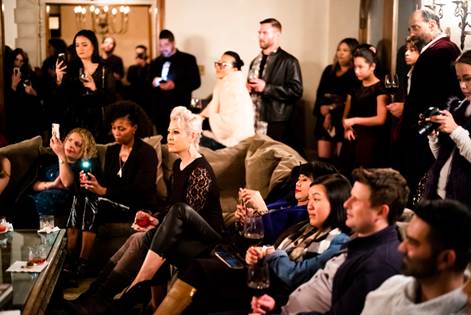 Upon entering the mansion (and passing a gorgeous evening panoramic view of the Hollywood skyline), guests were treated to a luscious red wine from Antica Napa Valley, a perfect accompaniment for a stroll through the ornate living room and the stunning courtyard. Back in the sitting area, the comfortable couches were the best seat in the house to enjoy the brief program arranged by Kim, featuring an incredible and moving live performance by American R&B Singer-Songwriter Liv Warfield as well as an inspirational poetry reading by Skyler Griswold of Future Generations Now.