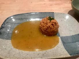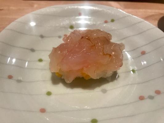 During the meal, each course is served to all guests at once. The cadence and tempo of the meal have been mindfully created to allow each course to be enjoyed to the fullest. The couple to my right appeared to be regulars as they bragged or raved about how they like excellent sushi and this was not a special occasion for them. I noticed the woman had passed on several courses, probably because she knew she had to save room for her favorite dishes.