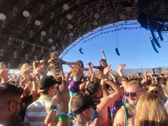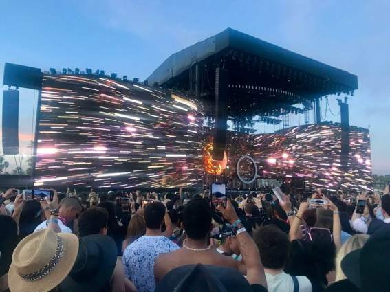 One of the top acts on the main stage Sunday night was German Russian DJ Zedd who tore up the crowd with heart-pumping tunes choreographed to laser lights and a gynormous LED video screen. Katy Perry appeared in a red sparkly cape to sing “365.” As more songs belted out from the man controlling the electro-house buttons, the massive crowd jumped with joy but it was hard to tell at times if another voice in his DJ set was real or part of the tunes. The remix of Whitney Houston’s “I Want to Dance With Somebody” almost felt like she came to life. Khalid gave a breathtaking performance while Childish Gambino captivated the audience with stories and lighting up a doobie.