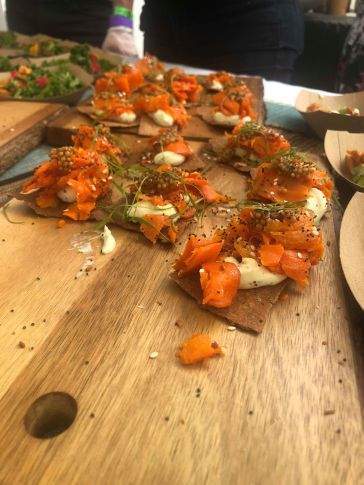 Jewel offered the most unique menu featuring plant-based offerings. Kale Salad, Carrot Lox, and Buffalo Yuba were available for tasting. All options were vegan and gluten-free.