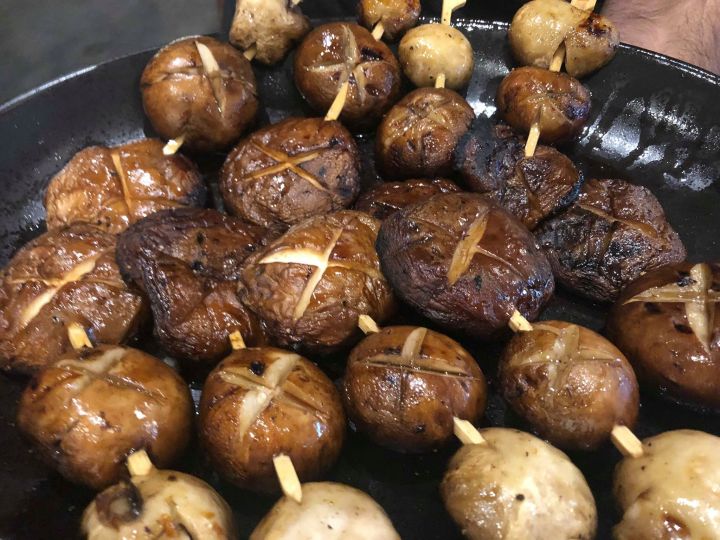 Standout items include thigh and green onion, chicken meatballs, pork belly, pee wee potato and mushroom party sticks. Chef Shemtob features jidori chicken for his items and utilizes traditional grills and charcoal imported from Japan. The thigh and green onion skewer was a nod to traditional Japanese yakitori and beautifully executed. The most unique and interactive item was the chicken meatball. Grilled to perfection, the generously portioned meatball is served alongside an egg yolk and tare dip. Chef Shemtob’s dedication to the ingredients is reflected in the dipping sauce. The egg yolk is sous vide just precisely to provide a rich and velvety texture to coat the chicken.