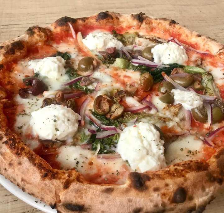 We like the puffy airy crust dough, although we would like to have seen a crisper bottom crust to hold all the ingredients when picked up, reminiscent of our local childhood Italian pizza joints in Connecticut. We still wolfed down the tasty Coppia pizza with ricotta and fennel sausage, but consumption would be much easier with a fork and knife. The Apulia pizza was next on our list after seeing the ingredients because they not only included olives, onions, burrata, and mozzarella, but anchovies! However, the more anchovies on our pie, the better.