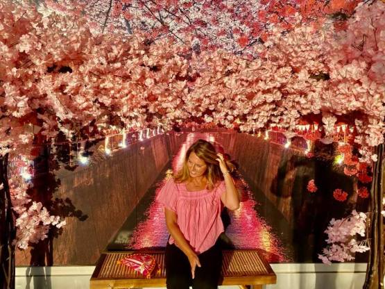 Pose in front of the artificial cherry blossoms outside the restaurant that give the effect you are in Japan surrounded by the cascading pink petals, before walking over the wooden “bridge” to Kappo Osen.