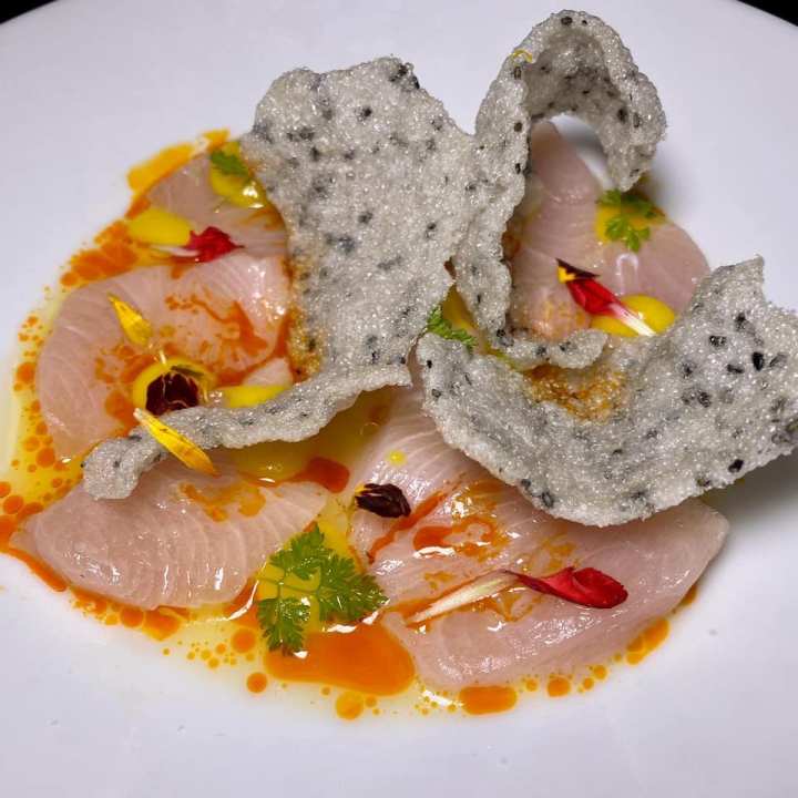 Behind the marketplace, a dining room is filled with light wood and pink sconces – an almost art deco dinner vibe. Indoor and outdoor patio seating is available along with a bar. We chose to sit in a quiet plush booth near the kitchen action. Inspired by French American cuisine and seasonal ingredients, Alice’s menu showcases classic dishes with inventive twists and unique flavors. Former Bestia alum Chef Lord Maynard LLera heads up food creations while Alice’s Chef de Cuisine Chef Geter Atienza comes from Broken Spanish.