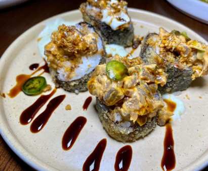 When back dining in, laugh with friends and share dishes like the Karaage fried chicken with Yuzu Kosho Aioli, pork and shrimp dumplings, a New England style roll heaping with crab, burrata salad, crispy brussels sprouts, and fried spicy tuna sushi roll.
