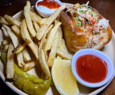 Consider the Kale Ceasar with steak or salmon, Asparagus Risotto, Mac & Cheese, Coq au Vin, Braised Beef Short Rib, Egg Sandwich, Fried Chicken Sandwich. For dessert, order the brioche French toast with berries or the Chocolate Bread Pudding.