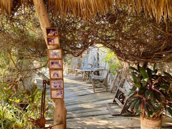 As we meandered the ground via a wooden plank walkway, we almost needed two hands to carry our drinks. We could easily see how this place must get packed when open. Various seating arrangements popped up throughout the walkway and photos of the owner from what looked like 30 years or more hung faded and pinned here and there.
