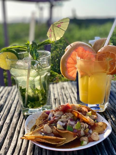 As we found a place to perch in astonishment of the views, a cheerful older man brought us our drinks, who we learned had been here running this place with his wife for 22 years. Fresh-squeezed margaritas 4 times the size of a normal glass were concocted. We opted for the grand citrus margarita spilling over with citrus fruits along the rim and a tiny umbrella to remind us we were somewhere in paradise.