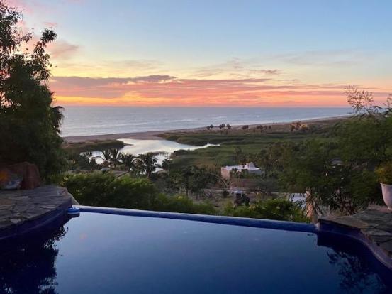 Our personal favorite up above the ocean is the rustic luxury Los Colibris Casitas at the end of a dirt road with sprawling views of the land and sea. Run by an American woman who fell in love with a Mexican man over 20 years ago, they not only built their home here but a hotel surrounded by native plants teaming with bird species and otherworldly views above the Pacific Ocean.