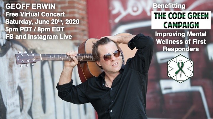 Singer/songwriter/comedian Geoff Erwin is excited to perform another virtual fundraising concert – but this time to raise money for The Code Green Campaign which provides awareness and education on mental health in first responders.