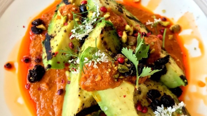 “It’s a very fun dish with the smokiness and char we get from the grilled avocado and the sweet and salty play that we get with the Tunisian BBQ sauce,” Chef Ryan says.